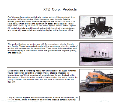Advanced Reports are more difficult to create, but are highly customizable and can display more complicated types of data. Advanced reports can be designed to print mailing labels, lists, invoices, office forms complete with graphics and more. The appearance, formatting and placement of data is entirely customizable. Below is an example of an advanced report: